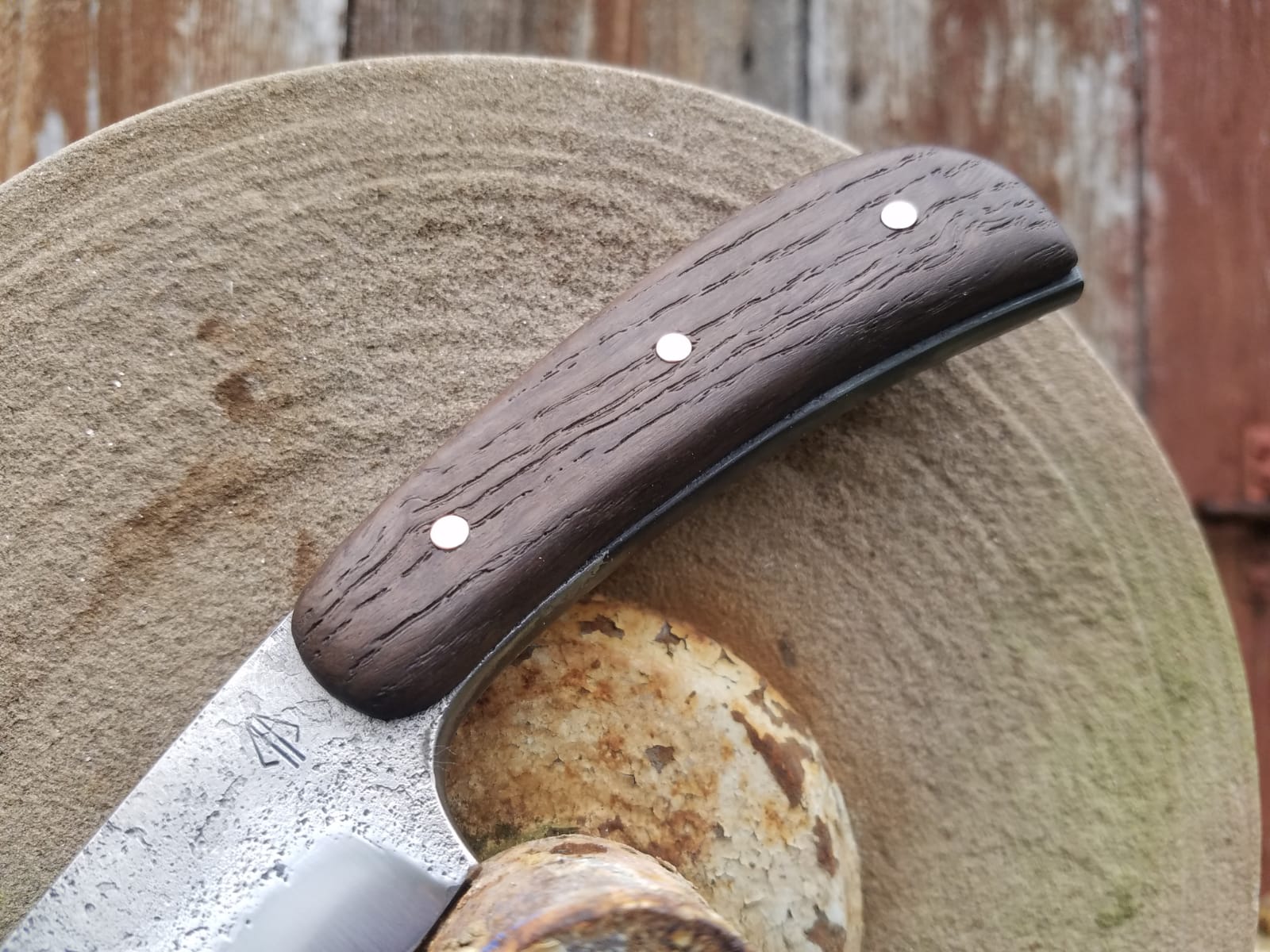 Couteau forgé en acier C70 avec manche en hêtre stabilisé et rivet mosaïques japonais,