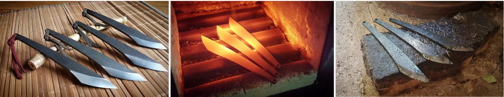 Couteaux de lancer ( style kiridashi ) en acier xc75 avec trempe sélective des pointes