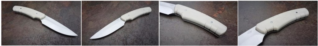 Couteau réalisé en acier xc75 avec un manche en ivoire synthétique « elforyn », longueur de lame : 10.5cm, longueur totale : 21.5 cm